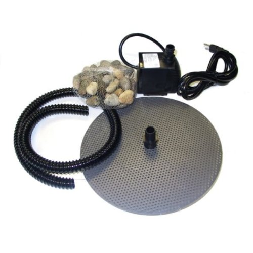 - Includes 500 gph pump, tubing, fountain head, screen and river rocks